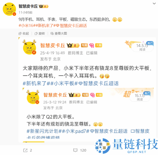 日前,数码博主“智慧皮卡丘”曝光了小米9月新品阵容,除了小米16系列外,还有耳机、手表、平板、磁吸生态等新品。据了解,小米16系列将首