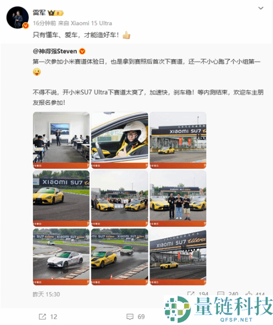 小米高管第一次下赛道就跑第一 雷军点赞!