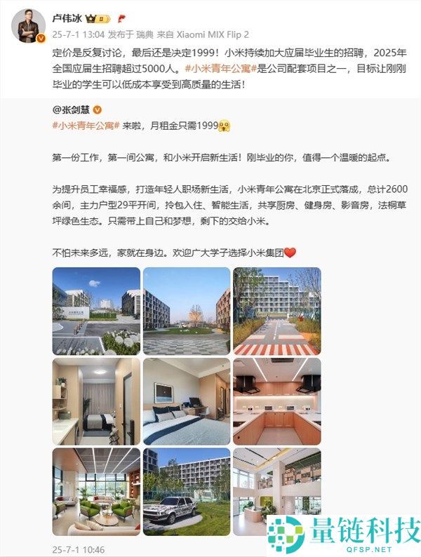 小米青年公寓首批员工入驻:人均1999元 还有礼品送