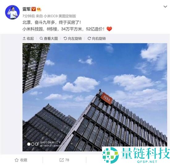 据快科技消息,“北漂,奋斗九年多,终于买房了!”这是雷军在2019年7月10日发布的微博,正式晒出了位于北京的小米科技园。如今已经过去6年