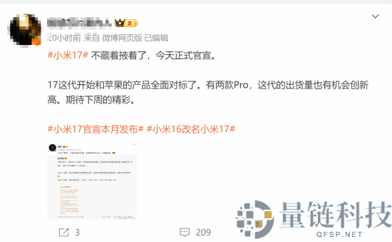 改名小米17对标iPhone17!小米新旗舰出货量要创新高