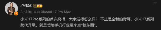 卢伟冰今晚开直播 将回应为何是小米17 不是小米16