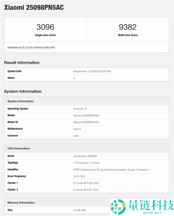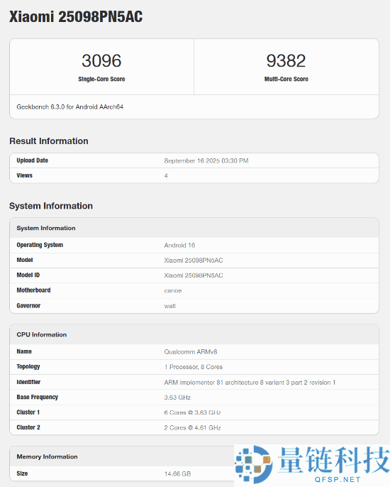 快科技9月17日消息,小米旗下一款型号为“25098PN5AC”的机型跑分现身Geekbench数据库,博主体验more透露,该机正是小米17 Pro。小米17系