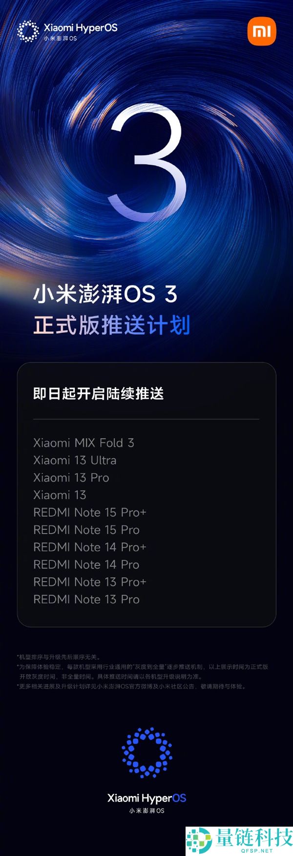 小米磅礴OS 3正式版公布掩盖更多机型:REDMI K60等15款装备在列