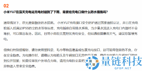 小米YU7露天充电时遇下雨 官方回应充电口是否需防水