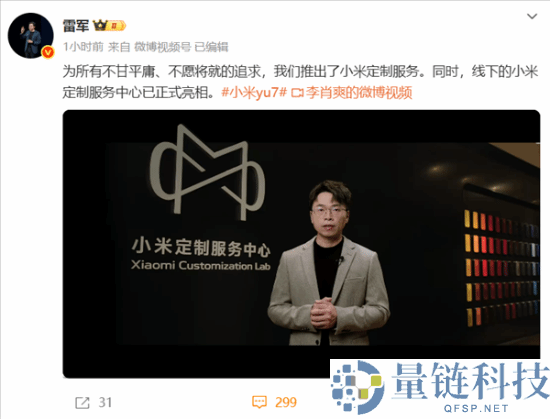 9月26日消息,今日,雷军微博称:“为所有不甘平庸、不愿将就的追求,我们推出了小米定制服务。同时,线下的小米定制服务中心已正式亮相。