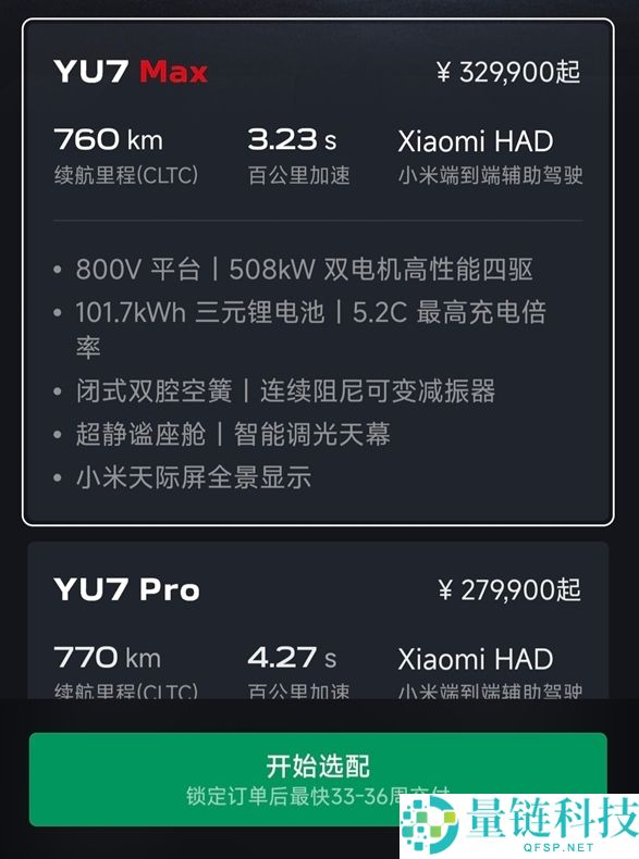 小米YU7预计交付时间公布:标准版最快53周 Max版33周
