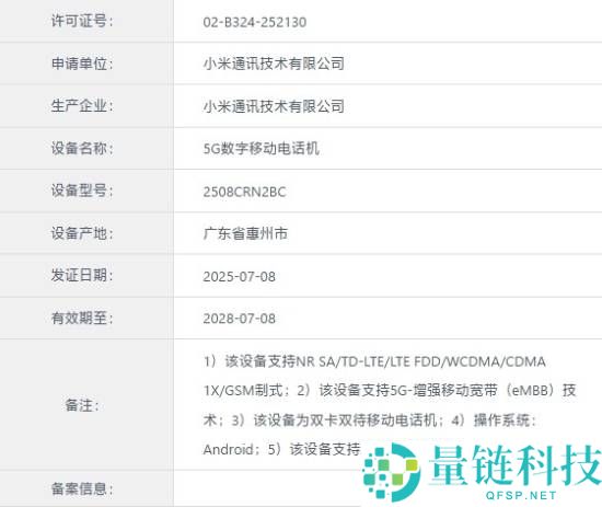 7月16日消息,据博主“完美编排数码”爆料,小米REDMI 15C 5G版本已经在国内入网,设备型号为2508CRN2BC。前不久该机的渲染图已经被曝光