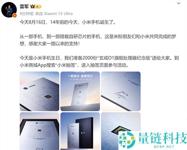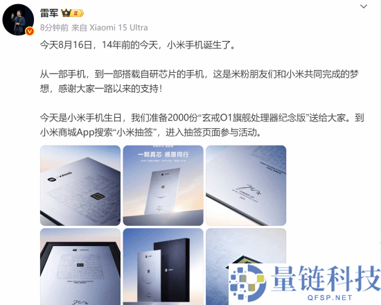 送2000份玄戒O1旗舰处理器纪念版!雷军:14年前的今天 小米手机诞生了