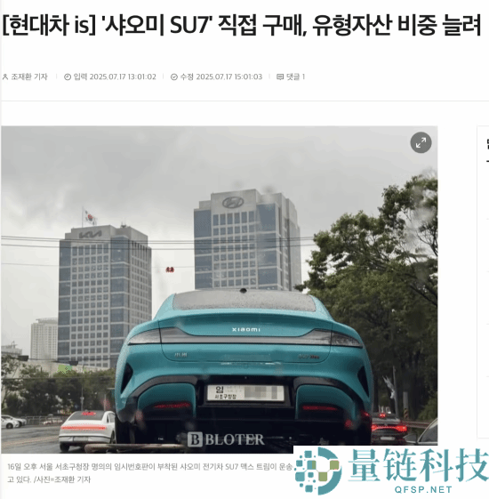 IT之家 7 月 21 日消息,据韩国当地媒体 Bloter 17 日报道,现代汽车最近购买了中国电动汽车公司小米的纯电动汽车 SU7,并将实车部