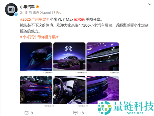 11月23日消息,近日在广州车展期间,小米YU7 Max紫水晶首次对外展出。今日,小米汽车官方公布了一组新车的实拍美图。镜头装不下这份惊艳,