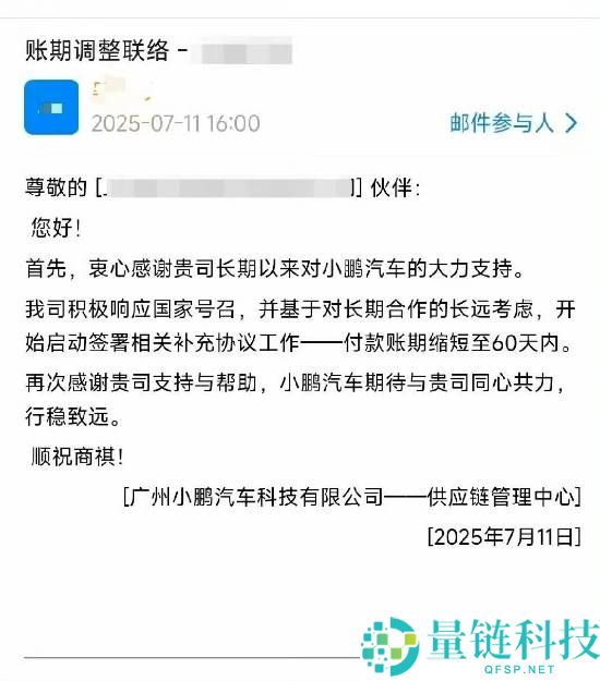 据财经网消息,工信部开通账期承诺相关窗口两日后,已有车企向供应商发布书面通知。7月11日,澎湃新闻记者独家从小鹏汽车供应链方面获得了
