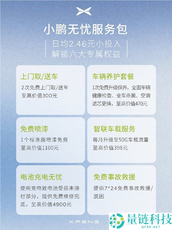 11月14日消息,近日,小鹏汽车正式推出无忧服务包”,899元 年,打包价值7600元的六大核心服务,覆盖日常保养、应急救援、补能支持等全用车