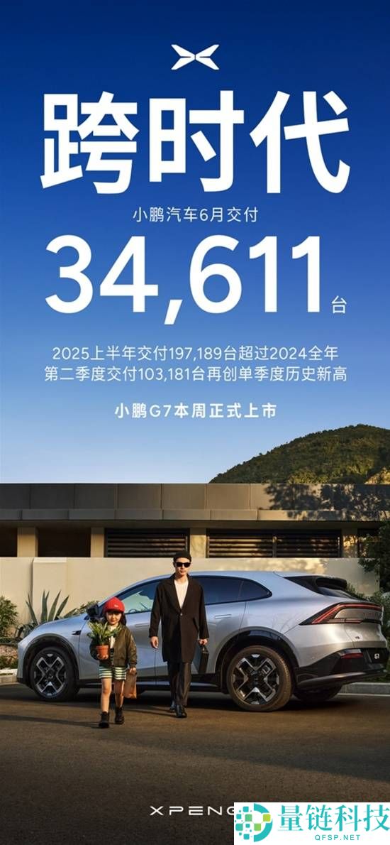 小鹏汽车近日公布最新交付成绩:2025年6月,小鹏汽车共交付新车34,611台,同比增长224%。2025年第二季度,小鹏汽车累计交付新车共103,181台