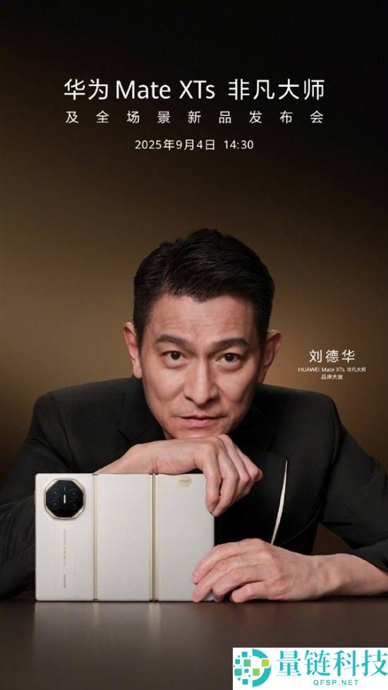 华为官方正式发布了华为Mate XTs非凡大师新海报,天王刘德华继续担任华为Mate XTs非凡大师品牌大使。据悉,去年首款三折叠Mate XT就是刘