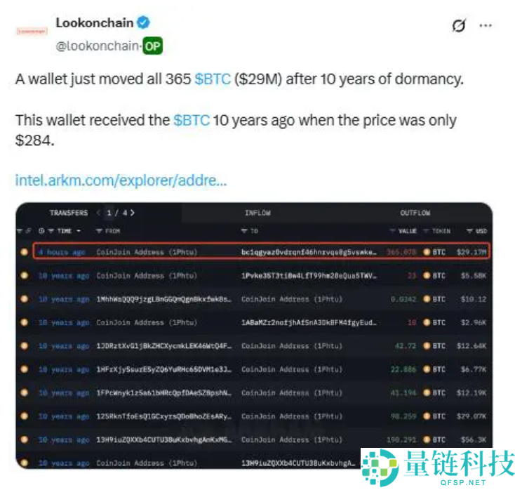 持有14,000枚比特币的OG地址六年后转移资产:价值约15 2亿美元,市场影响几何? 量链科技7月9日消息,据Lookonchain监测,一位比特币OG