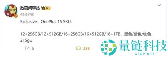 8月29日消息,博主数码闲聊站爆料,一加15提供12GB+256GB、12GB+512GB、16GB+256GB、16GB+512GB和16GB+1TB五种选择,有黑色、紫色和钛色三