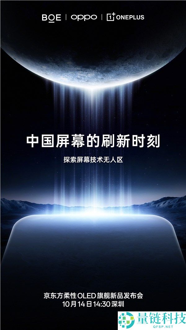 一加宣布将于10月14日在深圳举行京东方柔性OLED旗舰新品发布会,这块屏幕由一加和京东方联合打造,探索屏幕技术的无人区。一加中国区总裁李