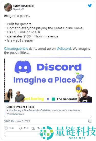 Not Boring 资本创办人 Packy McCormick,昨日 (8) 在 Twitter 上发表了一篇文章关于社群平台 Discord 的发展历程及未来走向,其
