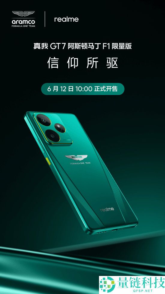 2025年6月12日—中国 ·深圳—真我GT7阿斯顿马丁F1限量版于今日10:00正式开售,24GB+1TB版本仅售4299元。作为年中巨献的诚意之作,真我GT7