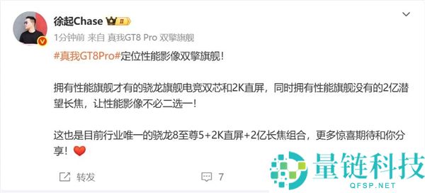 真我GT8 Pro回归2K屏 徐起,独家定制独立产线