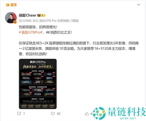 3999元起 徐起,真我GT8 Pro就是4K档质价比之王 嘎嘎香