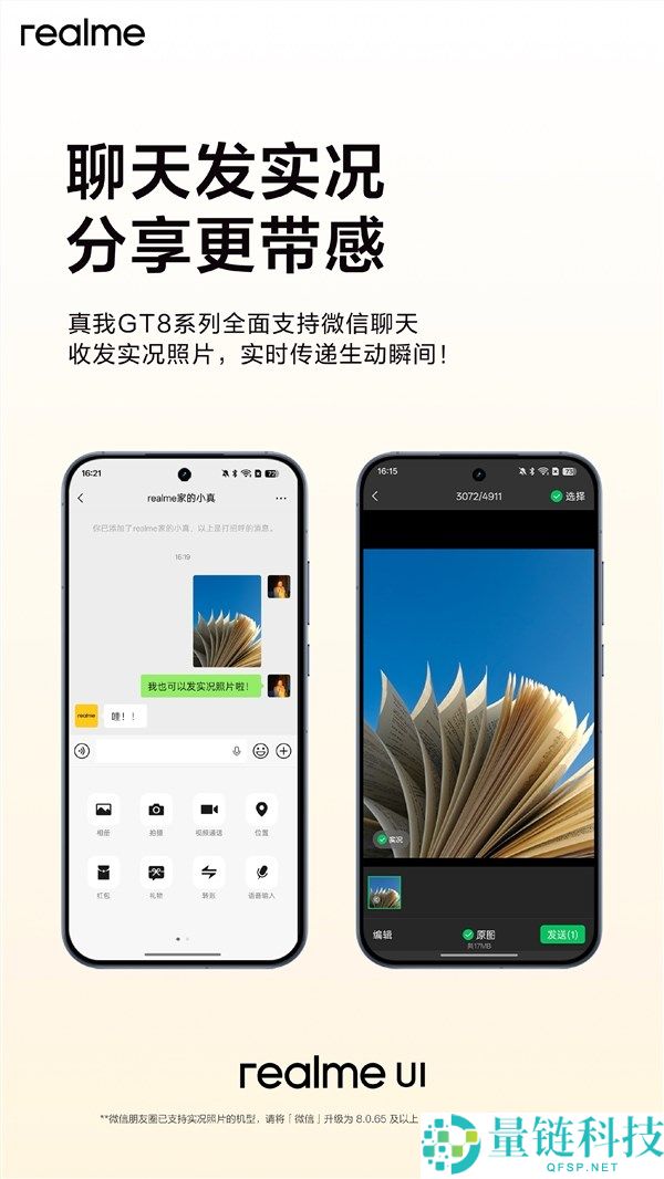 12月8日消息,今日,真我手机宣布,真我GT8系列全面支持微信聊天收发实况照片。目前,只要是已支持朋友圈发布实况照片的机型,将微信升级至