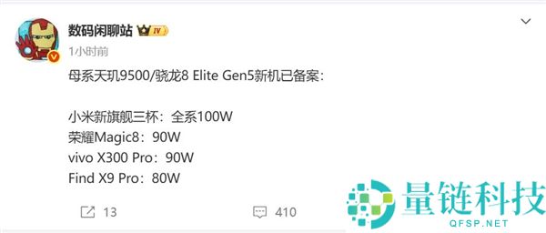 9月3日消息,博主数码闲聊站爆料,首批骁龙8 Elite Gen5、天玑9500旗舰已经备案,包括小米16系列、荣耀Magic8系列、vivo X300系列和OPPO