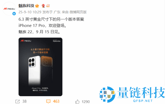 魅族官方欢迎iPhone 17 Pro登场:6.3英寸另一个版本答案