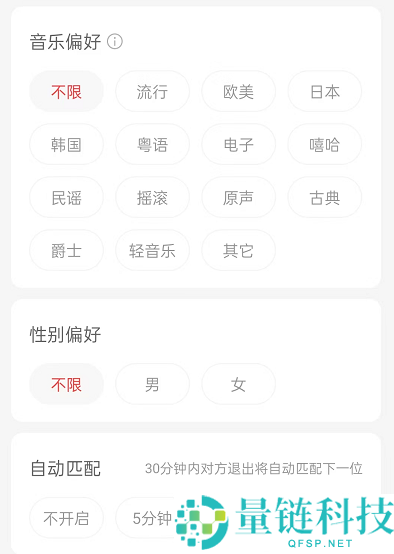 4、勾选音乐偏好、性别偏好、匹配时间即可。