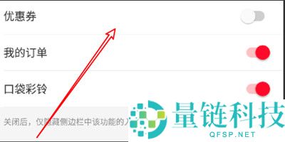 4、在侧边栏管理页面中,关闭优惠券选项,即可关闭优惠券广告。