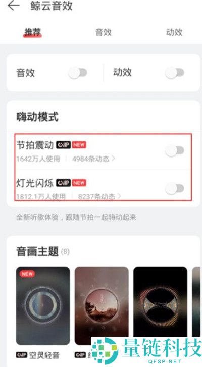 3、进入鲸云音效之后,然后我们找到节拍震动和灯光闪烁功能,打开右侧的滑块即可。