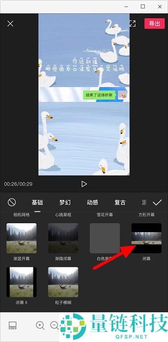 4.在基础特效分类中,往下滑,找到并点击“闭幕”特效。