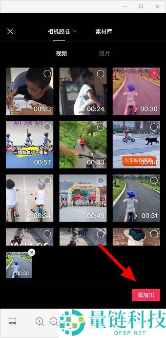 2.选择需要添加特效的视频,点击“添加”。