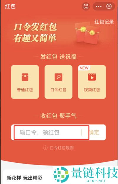 3、在红包功能选项的页面中,用户可以通过自己的喜好设置口令,点击确定即可发送口令红包。