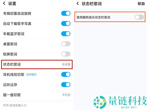 以上就是给大家分享的酷狗音乐歌词状态栏在哪关闭的全部内容,更多精彩内容尽在量链科技!