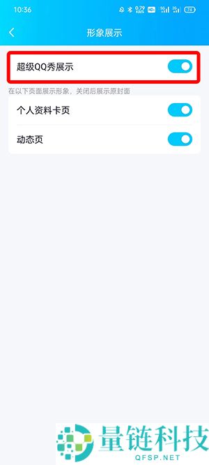 5、最后点击【超级QQ秀展示】右侧的滑块,即可关闭超级QQ秀(如图所示)。