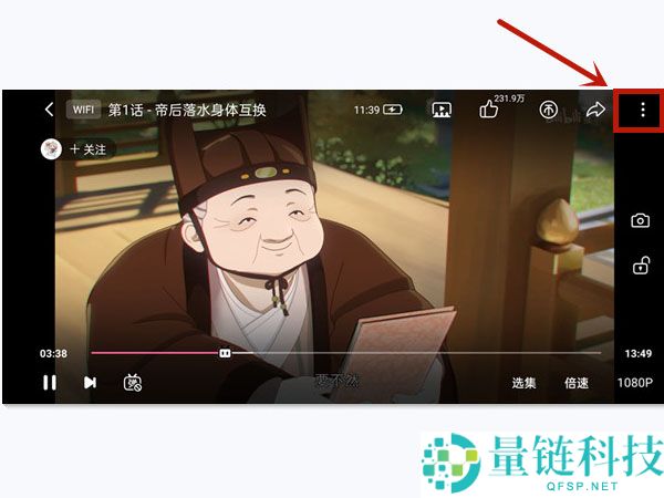 2、轻点播放页面后,点击右上三点图标进入播放设置页面。