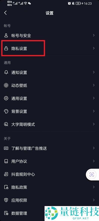 3、在设置界面中,可以看到上方有一个【隐私设置】进入其中;