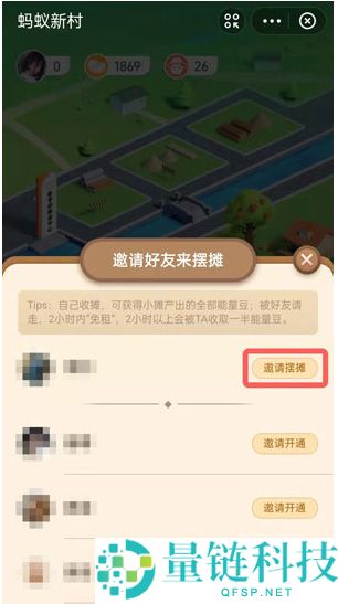 2、土地中会自动跳出页面,你在此就能邀请开通的好友来摆摊了。