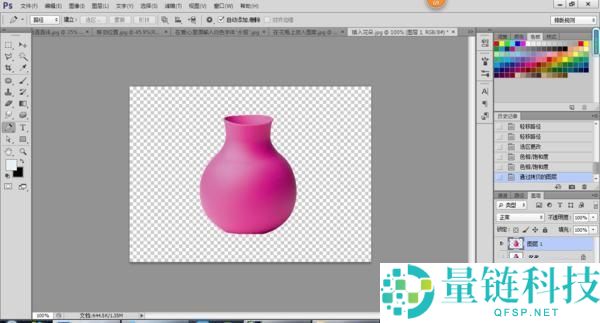1、在PS软件中置入普通照片,用魔术棒/钢笔/通道将照片上的花瓶抠出;