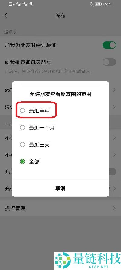 以上就是给大家分享的微信朋友圈在哪设置半年可见的全部内容,更多精彩内容尽在量链科技!