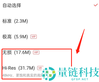 第三步:选择无损或者Hi-Res即可。