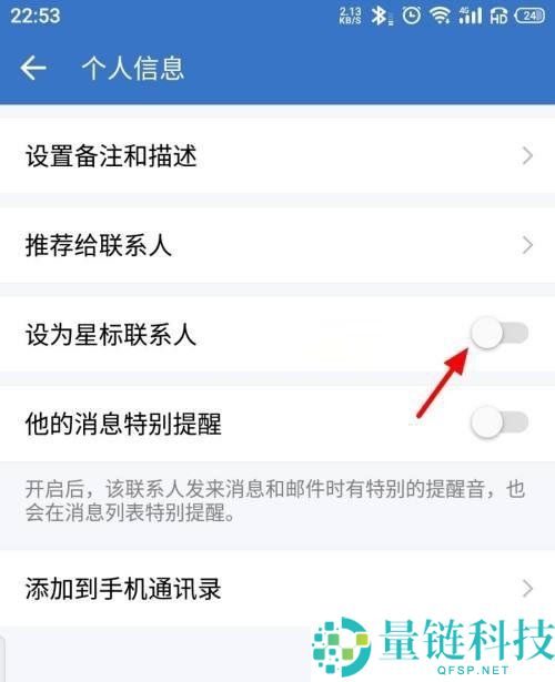 4、进入个人信息界面,关机【设为星标联系人】即可。