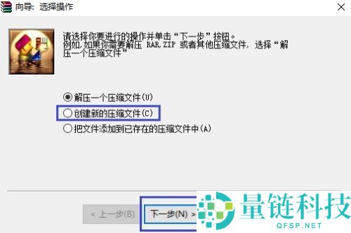 第二步:我们点击第二项“创建新的压缩文件”,然后选择“下一步”。
