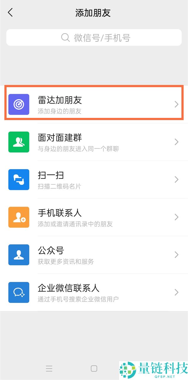 2、然后点击雷达加朋友。