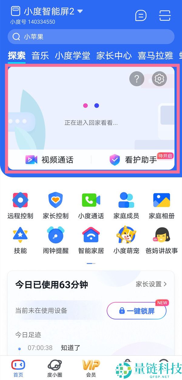 2、然后打开小度APP,在首页点击【回家看看】即可看到设备实时监控画面。